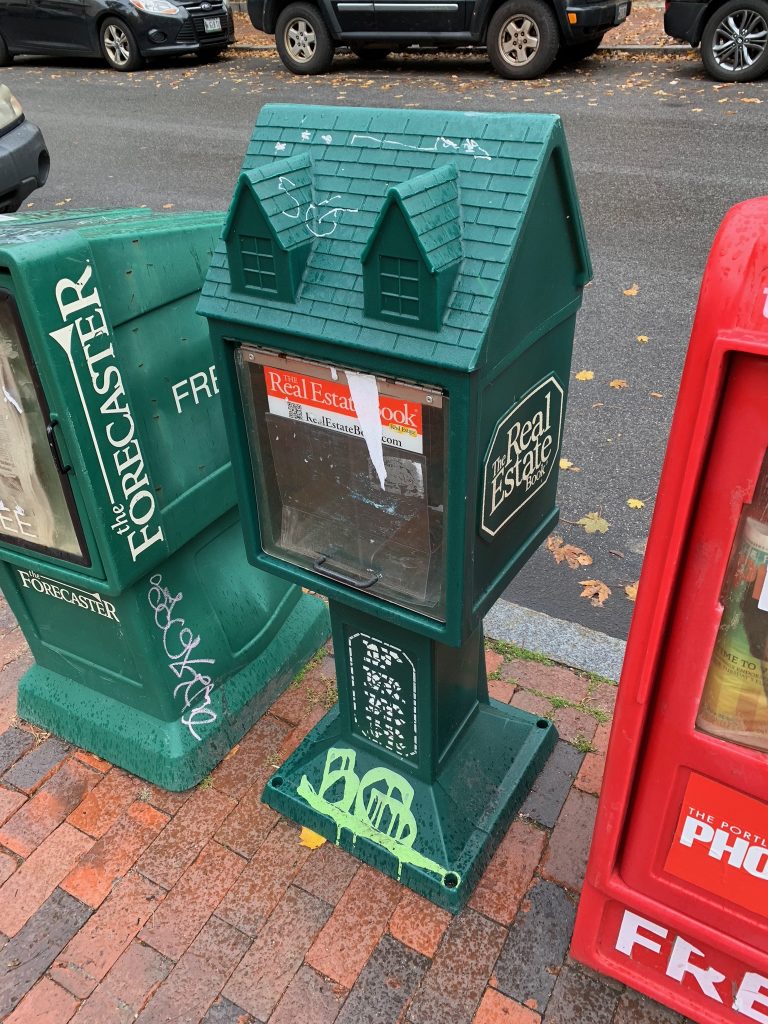 Another green birdhouse—maybe this site should be called green birdhouses. Anyway–once again from Portland Maine–and showing off the graffiti once again!